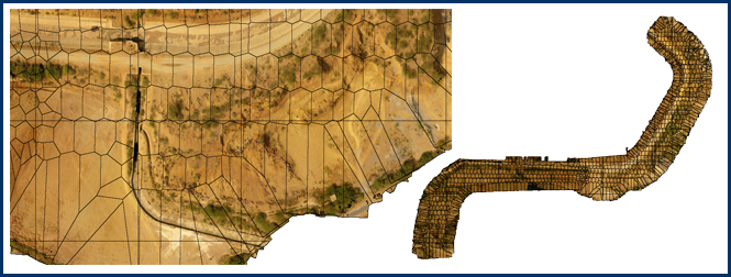 This method handles all types of terrain, as well as large datasets. Distances are preserved and therefore the orthomosaic can be used for measurements.